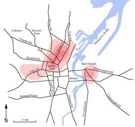 | Keywords: Conflict deaths of the Troubles 1920-1922 in Belfast.jpg en Conflict deaths of the Troubles 1920-1922 in Belfast areas with more than 50/100/150 deaths per km² de Tote der Unruhen in Belfast zwischen 1920 und 1922 Gebiete mit mehr als 50/100/150 Toten pro km² own Hozro 2014-08-27 Source Niall Cunningham http //www cresc ac uk/sites/default/files/CunninghamSocialGeographyOfViolenceWP122 pdf The Social Geography of Violence During the Belfast Troubles 1920 “22 pdf 1 6 MB CRESC Working Paper Series No 122 University of Manchester März 2013 Fig 3 Maps of Belfast Belfast in the 1920s Cc-zero |