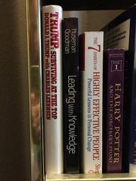 Keywords: bookshelf room indoor book text It's hard to get read on my Airbnb host, but worth assessing their book shelf before talking politics It's hard to get read on my Airbnb host, but worth assessing their book shelf before talking politics