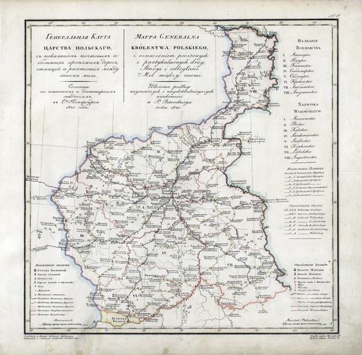 | Keywords: Congress Poland 1820.jpg Ца ство Польское Congress Poland Геог афический атлас Российской импе ии Ца ства Польского и Великого Княжества Финлянского асположенный по губе ниям на двух языках с означением в онных го одах местечек сель де евень и всех п имичательнийших мест почтовых и больших п оезжих до ог станций и асстояния между оными и п очими селениями в ве стах и милях на 70 листах с Гене альною ка тою и Таблицей асстояния ве ст по почтовым до огам между знатнийшими го одами Сочинен по новейшим и достове ным сведениям в пользу обучающихся Российской Геог афии и для составления до ожников путешественникам служащих Военно-топог афического дела Его Импе ато ского Величества по ква ти мейсте ской части подполковником Пядышевым 1820 Пядышев Василий Пет ович PD-old Geographic Atlas of the Russian Empire Kingdom of Poland and Grand Duchy of Finland 1820-1827 Maps of the history of Russia in Russian Old maps of Congress Poland Maps uploaded by ShinePhantom from various sources 1820 maps of Russia |