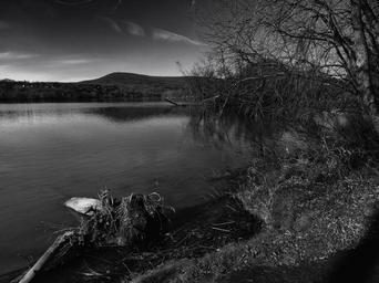 Keywords: connecticut river hills forest trees lake water reflections black and white sky clouds nature outside countryside rural
