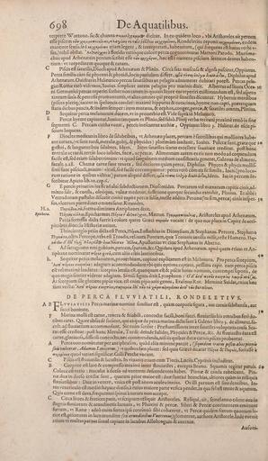 | Keywords: Conradi Gesneri medici Tigurini Historiae animalium liber IV (14948405354).jpg 698 De Aquatilibus <br> terprete Wottono fic channa owxox / ®' dicitur In eo quidem loco vbiAriftotelesaitpercara <br> efle pifcera rav xau j ovoiAihav i n Kayiats re t«m cl qis Ktpfiupwuv Rondeletius reponit Ki ta ivavy eodcm <br> manentefenru redxa w//ev6 f etiamlegere interpretari habentium quifrequensefthuiusverbiv ' <br> fus nihilobftat A ri' « rafloridovari6quecolorepercacognominaturMatroniParodo Mnefima- <br> chus apud Athenamm percam fcribit elfe rav y av hoc cft e numero pifcium ferratos dentes haben- <br> tium vt torpedinem quoque ranam <br> C Pifcis cft faxatiliSjDiocliapud Athenaram Plinio Circa faxa mufcofa algofa pafcitur Oppianus <br> Percafimiliscumfitphyceni phycidUocispauM Diphilus apud <br> Athenseum Ouidius in Halieutico percas faxatihbus an pelagiis adnumeret dubitari poteft Percas pek <br> giasRomffifarovidemuSjIouius fimplicer autem pelagiaspro marinis dixit AlbertusadlitoraOcea-iQ <br> ni Germanicipercas reperiri fcribinnon tamenin quouis litore eas reperiri exiftimandum eft fed aipero <br> tantum faxis petrofis promontoriis vt alios omnes qui proprie faxatiles dicuntur Hybernis menfibus <br> pifces pieriq; iacent in fpeluncis conditi maxime hippurus coracinusyhyeme non capti praterquam <br> ftatis diebus paucis iisdemfemper item murama orphus conger perca faxatiles omnes Plinius <br> D Sequitur perca melanurum ducem vt in prouerbio eft Vide fuprain Melanuro <br> E Percs hyeme capiuntur Iouius tanquam ex Plinio fedfals6 Plinij verbarecirauiproximcretroin fine <br> fegmenti C Percam cirrha vorat per cis inefcantur anthias Oppianus libro 3 Halieut de efcispi- <br> fcium loquens <br> F Diocles medicusin libro de falubribus vt Athenseo placet percam e faxatilibusqui molliores habc- <br> antcarnes vtfuntturdi meruk gobij phycides plurimum laudauit Iouius Pulcra funt grata que a <br> guftui languentibus falubres Idem Inter faxatiles fcarus excellere fuauitatc crcditur pofthunc <br> memheacturdi tertio loco iulides fuca; acperca Alimentumautemexeisnonmodoadcoquenduin <br> facile eft fed etiam faluberrimum vt quod fanguinem medium confiftentia generct Galenus de alimenr <br> facult 3 z8 Chamas carnefunt tenera feddurioresquamperca Diphilus Phycen phycismolli£ <br> fimi funt pifciculi minim virofi fed facile corrumpuntur perca vero cum eis fit fimilis locis pro loco- <br> rum ratione in quibus vi itat parum aliquid differt xjl To-arvs- hhiya M«rI« Idem Ius in percarn de- <br> fcribitur Apicio lib io cap 6 <br> G E percis priuatim iusfit ad aluifubdudtionem Diofcorides Percarum vel mamarum capitis cinis ad- <br> mixtofale cunila oleoque vuluaimedetur furntionequoquefecundasextrahit Plinius Etalibi; <br> Verendorum puftulas difcutit cinis e capite percse falfie melle addito Peronaefmaiim percae cinis infper- 3 o <br> fus vlcerum putredines omnesfanat Kiranides <br> H a ne jiiJW T S forrna diminuta Antiphanes dixit <br> fyttheu nefjt tfloA Epicharmus m' » r Jv i ri ga Matron Tfa uuovoiKi\at i Ariftoteles apud Athenamm <br> Pcrcafortaflis di a fuerit a colore quem Graeci kvov vocant de quonosplurainCapitedeacci- <br> pitribus diuerlis Hiftoriasauium <br> Thracia regio prius dida eft Perca n 'pjo Euftathius in Dionyfmm Stephanus Percote Stephano <br> mpwTinolim Percope vrbs eft Troadis veliuxta Pontum qux Troianis auxilia mifit tefte Homero n«f- <br> kutwj Jl' ri r yyAQa §vi£ ' yi/Mt iarstv 'H/oc Apollonius vt citatStephanusin Abarno <br> f Ad fartaginem emigobium percam fparum c Quidam apud Athenaeum apud quem etiam ex An- <br> tiphane nominatur vri m /r» cum aliis cibis lautioribus a <br> h Sequitur perca melanurum prouerbium copiose explicatum eft in Melanuro Pro perca fcorpium <br> 'Avri nipKnr gko iov adagium acommodandum vbi quis optima captans peflima capit nam percapifcis <br> eit vel maxime laudatus fcorpius letalis eft quanquam eft pifcis nuius nominis contempti faporis de <br> quo magisfentirevidetur adagium Simili figuradixitLycophron O c J\' kvritmf iko vios KeuuamaQtt <br> At fcorpium iile glutiens pipus vice eft enim pipo auis genus Erafmus Rot Merainit Suidas cuiu hsc <br> funt verba 'Ayy i us trKo Tioy afoi iet ri iav t« yjip a atftvuivav ivri tuv Qihvovav <br> DE PERCA FLVVIATILI RONDELETIVS <br> A BTJLvviatilis Percaraarina3nomine fimilioreft quamcorporisfigura autcarnisfubftantia aut <br> X fiicci bonitate <br> p Marinamolheftcarne tenera friabili concodu facih bonifucci fluuiatilishisomnibusferedo- <br> tibuscaret Q areabfurdefaciunt quieaquaedepercamarinadicl afuntaGaleno libro dealiment fa- <br> cult adfluuiatilemaccommodant Sicenimfcribit Prsftantiffimusinterfaxatilesvoluptatiscaufa Sca- <br> rus eife creditur poft hunc Merula; Turdi deinde Iulides Phycides Percs c At fluuiatilis dura eft <br> carne glutinofa difticili concodu nec commendanda nifi iis quibus durae carnis pifces probantur <br> A Percanonnominaturperantiphrafim quodaliisminimeparcat fiqttidem trattu pifcesaliospirmit <br> ftiuvtflnerat Adamm Lonicerus vt quibusdam placet fed quia Grsce dicatur Yli n Tli S w fortafle a <br> Ts fVeivquodvariarifignificat GalliPerchevocant <br> C Pifcis eftnuiuatilis lacuftris In viuariis etiam cum Tincis Luciis Cyprinisincluditur <br> B Corpore eftlato comprefforaaximeinter fluuiatiles exceptaBrama Squamis tegitur paruis 9 <br> Coloreeftvario maculas adorfo adventrem defcendenteshabet Pinnas cauda rubefcunt Pin- <br> nae dus in dorfo erecla funt quarum prior maior eft dua fimt ad branchias altiores quam in reliquis <br> fluuiatihbus Duas in ventre vnicaeft poftanumaculeoinnixa Os illi paruum eft fmedentibus In» <br> tus ventriculo eft medio hepate diuifo a cuius maiore parte vefica pendet in qua fel eft tcnue aqueum <br> Quia carne eft dura frequentes fpinas anatura nonaccepit <br> C Circalirora fruticesparit vtfcriptumreliquit Ariftoteles Reliqui ait femelannoeduntouain <br> ftagnisfluuiorum arundinetislacuum vt Phoxini percar Siluri Perea; continentememi
