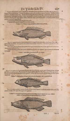 Keywords: Conradi Gesneri medici Tigurini Historiae animalium liber IV (15569445225).jpg De Turdis Lib IV <br> 19 <br> 1017 <br> Superioribus fimilis colore vero difpar Eft enim varius admodum vixq; ullus eft qui pluf es co - <br> lorumdifFerentiashabeat Viridiseftmagnaexpartejfedpunttispuipureis ceruleis indicis aliis <br> confufis coloribus confperfus Pirtnze ad branchias flavae five rufae lunt alix omnes partim easruleaj <br> funt partim virides partim rufae Cauda rufa punctis car ruleis notata Branchiarum opercula punclis <br> lineis rufis finuofis certis fpatiis diffitis diftin a» Adeo variis iucundis coloribus of natus eftjUfc <br> pulchri nomine fit digniflimus <br> Carne tenera friabili delicata aliis non cedit <br> Frequens eft Romaj Antipoli in Lerino infula <br> Turdm III I Tfittacus vulgo quibttfdam afimili coloris varietate <br> t <br> F <br> C <br> to <br> © <br> Qja rt 1 generis turdus varius etiam eft dorfo nigrefcente pinna eius virefcente Ventre la- <br> teribus flavefcentibus A branchiis ad caudam lineaz virides dudhe funt Pinnarum qua; in ventue in- <br> fimacarruleafunt <br> Hinc nonnullis ex pifcatoribus noftris Pcrroquet»id eft pfittacum vocant qu6d ea fit coloris va- <br> rietate qua avis illa Indica <br> Similemfuccumgignit cum cejteris faxatilibus Facileconcoquitur quodtenerafitfubftantia <br> friabili <br> Turdus V colore aureo t lmea alba ab oculis ad caudam <br> 4©- <br> Qv intvm genus turdi gobionem flavura refert hoc ab eo di crepans quod lineam albam du am <br> ab oculis ad caudam habet Deinde maculis nigris quibus aiperfus eft gobms caret Pinna quoque u- <br> nka in ventre neque divifa quam habet gobius Turdus ifte color e aureo eft nec differt ab aiiis carnis <br> teneritate <br> THrdmVLfmilisquintOifedlineac rulea abocuHsadcaudam roflroac terii dtverfi <br> 5 <br> Sextvm genusquinto omninofimile nifiqu6dhuiclineaab pculisadcaudamdncl a nonalba <br> eft fed caerulea roftroque eft longiore aquilino <br> Turdm KII Cero ditius in Provinciajorfo aureo viriMtts maculis CdHjperfr c k V Jithend <br> videtur sAbhocundecimuscolortmvartetateduntaxatdtffert <br> I <br> Sfff <br> Septi- 42166668 132845 65980 Page 1017 Text IV http //www biodiversitylibrary org/page/42166668 1604 10 5962/bhl title 65980 Belon Pierre; Cambier Andreas; Gessner Conrad; Rondelet Guillaume NameFound Indica NameConfirmed Indica NameBankID 4432528 NameFound Pinna NameConfirmed Pinna EOLID 57673 NameBankID 2692221 NameFound Turdis NameFound Turdus NameConfirmed Turdus EOLID 14395 NameBankID 2472690 Biodiversity Heritage Library Conradi Gesneri medici Tigurini Historiae animalium liber IV qui est De piscium aquatilium animantium natura cum iconibus singulorum ad viuum expressis ferè omnibus DCCXII Early works to 1800 Fishes Mollusks Pre-Linnean works Zoology Smithsonian Libraries bhl page 42166668 dc identifier http //biodiversitylibrary org/page/42166668 pre-linnean works smithsonian libraries Information field Flickr posted date ISOdate 2014-10-19 Check categories 2015 August 25 CC-BY-2 0 BioDivLibrary https //flickr com/photos/61021753 N02/15569445225 2015-08-25 17 58 06 cc-by-2 0 PD-old-70-1923 Conradi Gesneri medici Tigurini Historiae animalium liber IV Photos uploaded from Flickr by Fæ using a script |