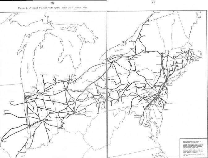 | Keywords: Conrail FSP.jpg Map of proposed Conrail route system The plan does not include much of the Erie Lackawanna Railway or Reading Company which the Chessie System was to get http //multimodalways org/docs/govts/federal/executive/Agencies/DOT/USRA/FSP/FSP 20VI pdf Final System Plan for Restructuring Railroads in the Northeast and Midwest Region pursuant to the Regional Rail Reorganization Act of 1973 Volume I pp 20-21 1975-07 United States Railway Association Washington DC PD-USGov Conrail History of rail transport in the United States System maps of defunct U S railroads |