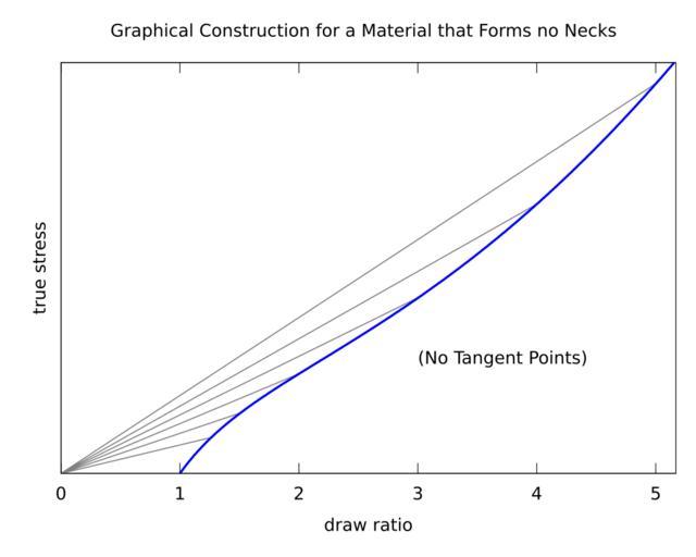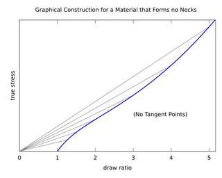 Keywords: Considere graphical no-neck.svg en Plot showing the Considéres graphical construction for a material that does not form a neck during tensile deformation Own Crosslink 2009-07-28 Materials Science Mechanical properties