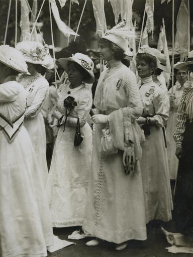 MAKE A MEME View Large Image Social & Political Union (WSPU) members carrying poles with white triangular banners waiting to take part in the women's Coronation procession, Constance Lytton in the foreground; printed inscription on reverse 'Copyright Central ...