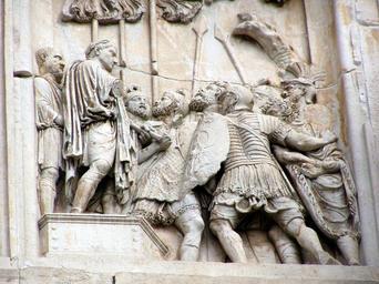 Keywords: Constarch d4.jpg en Detail of Arch of Constantine Detail of relief panel south side right panel of left arch Wilson Delgado Wilson Delgado 2003-03 Rome Italy Arch of Constantine - Marcus Aurelius reliefs