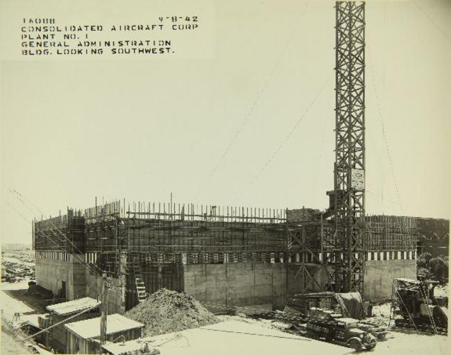 | Keywords: sdasm san diego air and space museum sandiegoairandspacemuseum aviation aeropace factories aeropacefactories san diego sandiego convair consolidated monochrome outdoor Call No.: 10-000040 Notes: Construction of Administration Building Title: Consolidated/Convair Aircraft Factory San Diego Year: 1942 Corp. Name: Convair/Consolidated Description: 8 x 10 Black and White Glossy Print Repository: San Diego Air and Space Museum Archive Call No.: 10-000040 Notes: Construction of Administration Building Title: Consolidated/Convair Aircraft Factory San Diego Year: 1942 Corp. Name: Convair/Consolidated Description: 8 x 10 Black and White Glossy Print Repository: San Diego Air and Space Museum Archive |