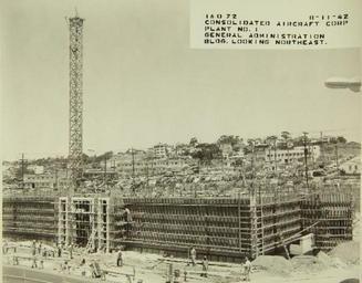 | Keywords: sdasm san diego air and space museum sandiegoairandspacemuseum aviation aeropace factories aeropacefactories san diego sandiego convair consolidated monochrome Call No.: 10-000024 Notes: Construction of Administration Building Title: Consolidated/Convair Aircraft Factory San Diego Year: 1942 Corp. Name: Convair/Consolidated Description: 8 x 10 Black and White Glossy Print Repository: San Diego Air and Space Museum Archive Call No.: 10-000024 Notes: Construction of Administration Building Title: Consolidated/Convair Aircraft Factory San Diego Year: 1942 Corp. Name: Convair/Consolidated Description: 8 x 10 Black and White Glossy Print Repository: San Diego Air and Space Museum Archive |