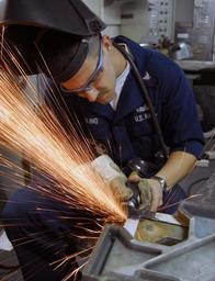 Keywords: construction worker metal grinder labor build job person hardhat helmet man grinding smoothing working