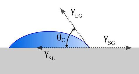 | Keywords: Contact angle.svg A diagram that shows the contact angle and interphase-energy between 3 phases gas liquid solid 2006-01-12 own assumed Joris Gillis~commonswiki Terminology This image uses the following shorthand terminology for the interfacial energy at the following interfaces Solid-Liquid <math>\gamma_\mathrm SL </math> Liquid-Gas <math>\gamma_\mathrm LG </math> surface tension sometimes referred to simply using <math>\gamma</math> such as in the Wikipedia article on Contact Angle or <math>\gamma_\mathrm LV </math> for liquid-vapour Solid-Gas <math>\gamma_\mathrm SG </math> sometimes referred to using <math>\gamma_\mathrm SV </math> for solid-vapour such as in the Wikipedia article on Contact Angle Surface tension diagrams |