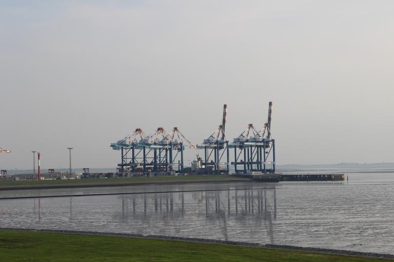 Keywords: container port water container bridge cargo bremerhaven germany water