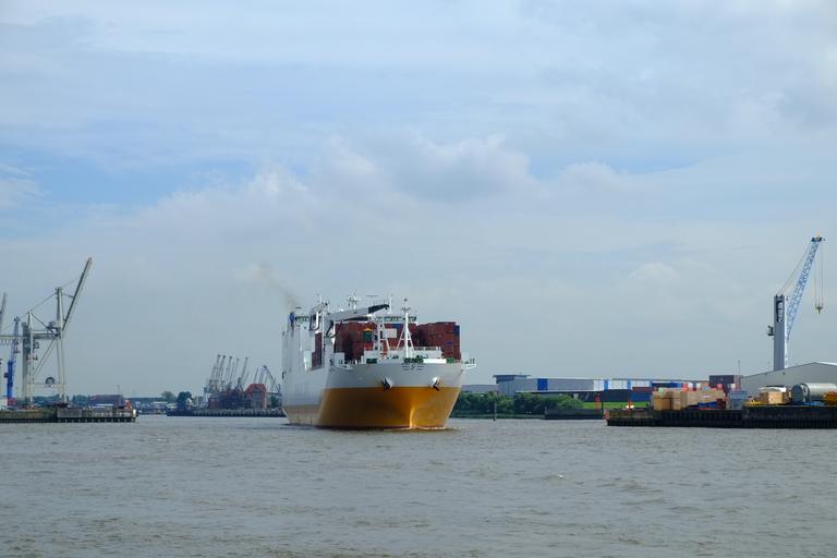 Keywords: container ship nautical vessel sea loading freighter displacement bow wave hamburg port spout big ship container cargo transport frachtschiff