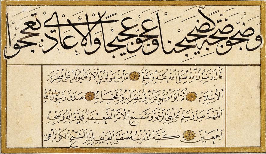 | Keywords: Containing Mustafa Kütahi's calligraphies - Murakka (calligraphic album)-editted-4 A Q.jpg خوشنویسی اثر مصطفی کوتاهی که روایتی از محمد پیامبر اسلام را نشان می دهد ۱۷۶۷ میلادی 1787 Containing 574845 Mustafa Kütahi's calligraphies 1787 /collection/sakp-sabanc-museum/artwork/murakka-calligraphic-album-containing-mustafa-kutahis-calligraphies/574846/ Containing Mustafa Kütahi's calligraphies /artist/mustafa-kutahi/4129374/ 4129374 /collection/sakp-sabanc-museum/ Sakıp Sabancı Museum 479109 http //muze sabanciuniv edu/ 12/28/2011 6 21 32 PM /collection/sakp-sabanc-museum/artwork/murakka-calligraphic-album-containing-mustafa-kutahis-calligraphies/574846/ 1767 1767 232 574846 False 1767 3/24/2012 5 19 49 AM 120-0386-MK Sakıp Sabancı Museum Ink colours and gold on paper 1760 1770 w155 x h232 mm 1767 False 1 51032448377581 Sakıp Sabancı Museum Object murakka-calligraphic-album-containing-mustafa-kutahis-calligraphies Murakka calligraphic album m 155 special url_id TQFeP-qoe2uJjA Assessments 1 Containing_Mustafa_Kütahi 27s_calligraphies_-_Murakka_ calligraphic_album -editted-4_A_Q jpg_ بار_دوم PD-old-100 Google Art Project works by Mustafa Kütahi Islamic calligraphy |