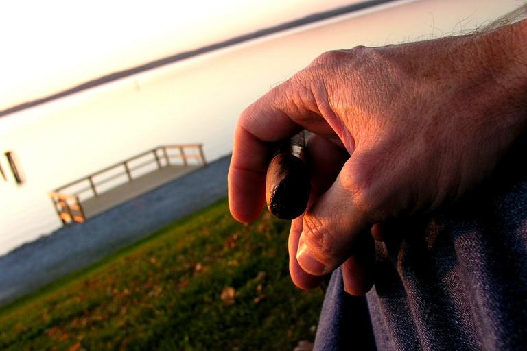 Keywords: contemplate meditate ponder hand cigar water horizon texture meditating contemplating thinking peace tranquil male man human rest relax view concentrate serene sitting calm sunset perspective
