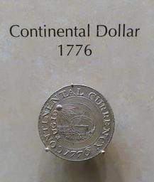 | Keywords: Continental Dollar, 1776, pewter - National Museum of American History - DSC00243.jpg en Exhibit in the National Museum of American History Washington DC USA Photography was permitted in the museum without restriction 2015-03-27 11 34 44 own Daderot other versions cc-zero Coins in the National Museum of American History Continental currency | ||||