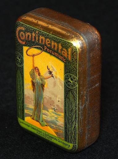 Keywords: Continental Pneumatic tin, photo4.JPG Very old product that is not produced and not sold any more Note that some tins may look the same but when looked for carefully there are some slight differences Photographed at a collector of Droste memorabilia and old tin cans For more info see http //www tincollectors nl/ tincollectors nl or email info tincollectors nl own 2014-02-08 12 31 51 Alf van Beem CC-Zero Trademarked Tire Repair tins |