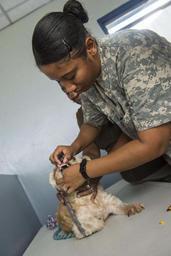| Keywords: Continuing Promise 2015 150601-N-NK134-032.jpg en 150601-N-NK134-032 COLÓN Panama - Army Sgt Janina Alaniz a native of North Bergen N J and a veterinary technician assigned to Public Health Command District Fort Hood Texas performs an exam on a dog at a veterinarian site established at Roberto Mariano Bula Stadium in support of Continuing Promise 2015 Continuing Promise is a U S Southern Command-sponsored and U S Naval Forces Southern Command/U S 4th Fleet-conducted deployment to conduct civil-military operations including humanitarian-civil assistance subject matter expert exchanges medical dental veterinary and engineering support and disaster response to partner nations and to show U S support and commitment to Central and South America and the Caribbean 2015-06-01 June 1 2015 https //www dvidshub net/image/1971817 150601-N-NK134-032 2015-06-03 08 05 COLON PA PD-USGov-Military-Navy Fort Hood Texas Images from DoD uploaded by Fæ Continuing Promise 2015 |