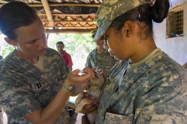 | Keywords: Continuing Promise 2015 150620-N-YM856-248.jpg en 150620-N-YM856-248 ACAJUTLA El Salvador Army Capt Emily Corbin left a native of Boulder Junction Wis and veterinarian assigned to Public Health Command District Fort Meade Md and Army Sgt Janina Alaniz a native of North Bergen N J and veterinary technician assigned to Public Health Command District Fort Hood Texas vaccinate a dog at a local farm during a veterinary subject matter expert exchange in support of Continuing Promise 2015 Continuing Promise is a U S Southern Command-sponsored and U S Naval Forces Southern Command/U S 4th Fleet-conducted deployment to conduct civil-military operations including humanitarian-civil assistance subject matter expert exchanges medical dental veterinary and engineering support and disaster response to partner nations and to show U S support and commitment to Central and South America and the Caribbean 2015-06-20 June 20 2015 https //www dvidshub net/image/2020166 150620-N-YM856-248 2015-06-22 08 07 ACAJUTLA SV PD-USGov-Military-Navy Fort Hood Texas Fort Meade Images from DoD uploaded by Fæ Continuing Promise 2015 |