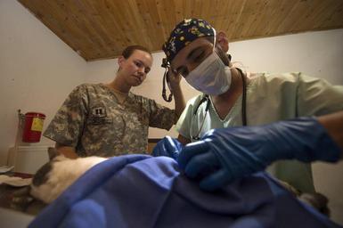 | Keywords: Continuing Promise 2015 150715-N-XQ474-016.jpg en 150715-N-XQ474-016 BUENAVENTURA Colombia - Army Capt Emily Corbin left a native of Boulder Junction Wis and a veterinarian assigned to Public Health Command District Fort Meade Md and a local Colombian veterinarian perform a procedure on a cat at a veterinarian site established at Eufermeria Canina del Grupo Antiexplosnos Urbano in support of Continuing Promise 2015 Continuing Promise is a U S Southern Command-sponsored and U S Naval Forces Southern Command/U S 4th Fleet-conducted deployment to conduct civil-military operations including humanitarian-civil assistance subject matter expert exchanges medical dental veterinary and engineering support and disaster response to partner nations and to show U S support and commitment to Central and South America and the Caribbean 2015-07-15 July 15 2015 https //www dvidshub net/image/2072303 150715-N-XQ474-016 2015-07-17 08 08 BUENAVENTURA CO PD-USGov-Military-Navy Fort Meade Images from DoD uploaded by Fæ Continuing Promise 2015 Photographs by Andrew Schneider |