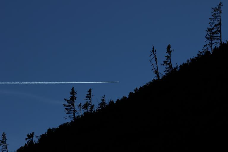 Keywords: contrail forest in the mountains sky