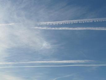 Keywords: contrail sky clouds blue aircraft fly air travel