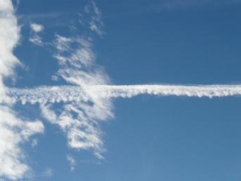 Keywords: contrail sky clouds blue aircraft fly air travel