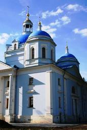 Keywords: convent cathedral domes blue building white light-blue tall windows arches architecture religion russian orthodox sky