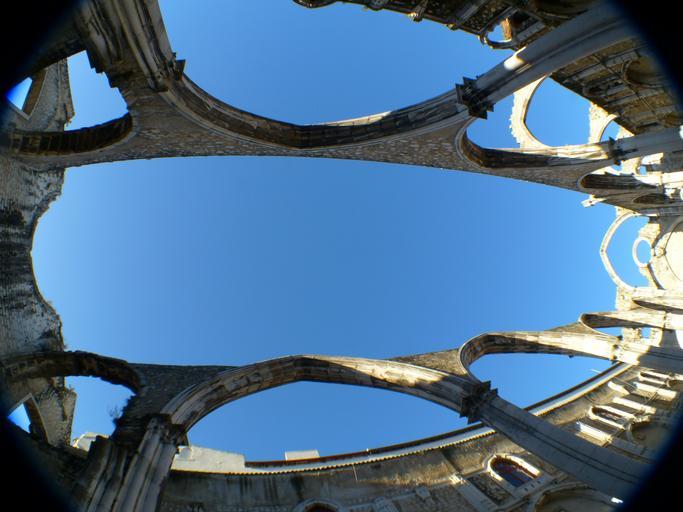 Keywords: convento do carmo former monastery carmelite order gothic destroyed earthquake ruin remains of a wall nave columnar marble museum lisbon portugal sky blue