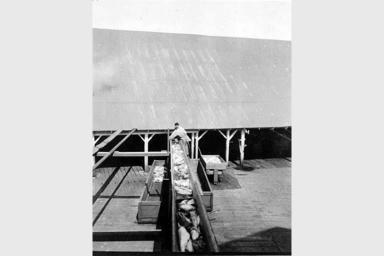 | Keywords: Conveyor belt carrying salmon at the Alaska Packers Association cannery at Clark's Point, Nushagak Bay, Alaska, July 1918 (COBB 119).jpeg check categories 29 December 2015 2 Photograph Creator John Nathan Cobb On verso of image Elevator carrying dressed fish from fish house to N C cannery Clark's Point Alaska July 1918 Subjects LCTGM Canneries--Alaska--Clark's Point; Cannery workers--Alaska--Clark's Point Subjects LCSH Alaska Packers Association; Salmon canning industry--Alaska--Clark's Point; Conveyor belts--Alaska--Clark's Point depicted place United States--Alaska--Clark's Point 1918 silver gelatin b w Institution University of Washington UWASH-JNCobb-source accession number 119 PD-old-auto-1923 1930 Information field Order Number COB049 Images from the John N Cobb Photograph Collection to check Canneries in Alaska Conveyor belts |