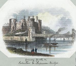 | Keywords: Conway Tubular Bridge & Castle (1128926).jpg accession number Newman and Co London England engraver credit line Abstract View of Conwy Castle and railway bridge showing a train near the castle and a paddlesteamer on the water A family can be seen in the foreground Size mm 72 94 exhibition history Institution National Library of Wales Technique print engraving colour object history object type CC-zero place of creation place of discovery 1128926 Conway Tubular Bridge Castle 1128926 Uploaded with GWToolset Conway Tubular Bridge Castle 1128926 http //dams llgc org uk/iiif/test/2 0/image/1128926/full/1000 /0/default jpg Welsh Landscape Collection Images uploaded as part of NLW - WMUK collaboration River Conwy Conwy Railway Bridge Conwy Castle in art |
