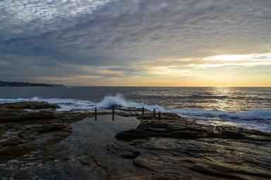 Keywords: coogee ocean shore coast sydney australia rocks sunrise waves clouds