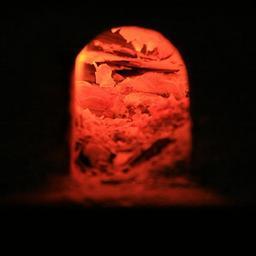 Keywords: Cook stove draft.png en Glowing coals and ash seen through a draft hole in an antique Copper Clad wood-burning cook stove own Huw Williams Huwmanbeing 2009-11-05 Files by User Huwmanbeing Embers Stoves Warren County Indiana