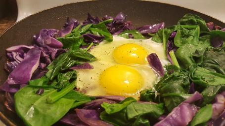 Keywords: cooking breakfast eggs yolk cabbage purple food spinach meal healthy breakfast healthy foods pepper