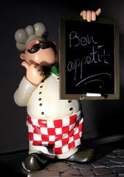 Keywords: cooking chef chef's hat board chalk man statue males cook delicious hat white food restaurant order menu good appetite thumbs up moustache