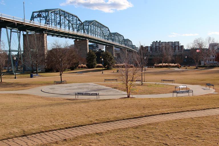 Keywords: Coolidge park chattanooga.JPG en Coolidge Park Chattanooga Tennessee with the Walnut Street Bridge in the background 2012-01-01 own Thomsonmg2000 35 061043 -85 307561 cc-zero Uploaded with UploadWizard Walnut Street Bridge Tennessee