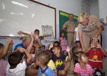 | Keywords: Cooperation Readiness Afloat and Training Thailand 2009 DVIDS187805.jpg en Rear Adm Nora Tyson commander Logistics Group Western Pacific sings with children at the Pattaya Orphanage Tyson visited the orphanage during a Cooperation Afloat Readiness and Training Thailand 2009 community service project CARAT is a series of bilateral exercises held annual in Southeast Asia to strengthen relationships and enhance the operational readiness of participating forces 2009-07-15 Petty Officer 2nd Class Jason Tross https //www dvidshub net/image/187805 090715-N-+++++-001 2009-07-15 23 18 PATTAYA TH PD-USGov-Military-Navy Pattaya Cooperation Afloat Readiness and Training 2009 Images from DoD uploaded by Fæ |