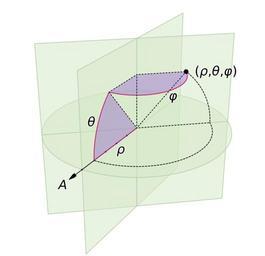 Keywords: Coord system SE 1.svg make-coord-system-figure with parameters -back 0 -rho 1 -system SE Own Jorge Stolfi 2009-05-03 Spherical coordinates