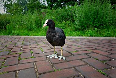 Keywords: coot bird waterbird rallidae fulica animal wildlife frontal shield toes lobed toes long lobed toes walking strong walkers