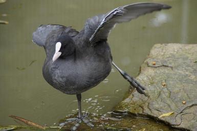 Keywords: coot duck water bird bird single leg stance on one leg flutter water