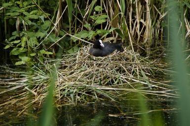 Keywords: coot nest breed water bird bach waters water chicken bird upbringing pond lake