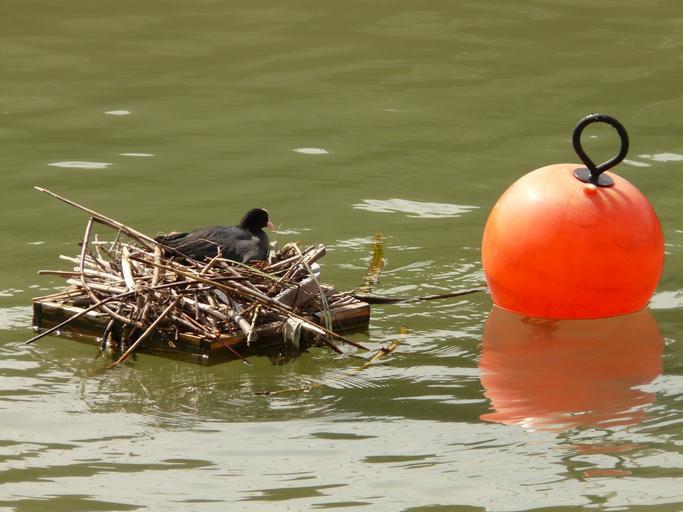 Keywords: coot nest water bird's nest breed boje swim red orange