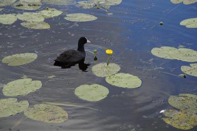 Keywords: coot ralle water bird bird animal water lake swim black pond waters water lilies lily pad