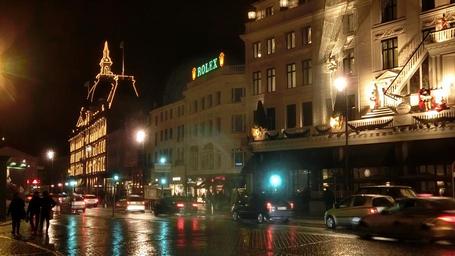 Keywords: copenhagen denmark city night city view building traffic reflections