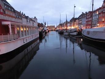 Keywords: copenhagen denmark nyhavn port sailing ships reflections evening reflection boats