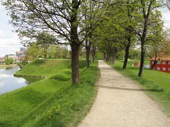 Keywords: copenhagen denmark path trees grass river water sidewalk walkway trail lane buildings architecture nature outside summer spring reflections