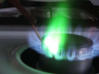 | Keywords: Copper flame test.JPG en Copper wire in a flame test The copper wire was previously dipped in HCl The oxygen oxidizes the copper to copper oxide which reacts with the hydrogen chloride fumes to make copper chloride which gives the bright flame test color own Chemicalinterest Copper Flame test Gas flames |