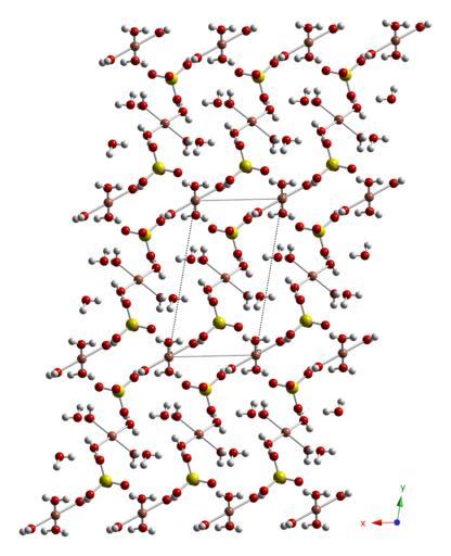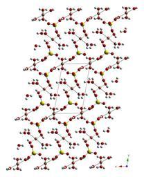| Keywords: Copper(II)-sulfate-pentahydrate-c-axis-xtal-2007-CM-3D-balls.png Ball-and-stick diagram of part of the crystal structure of copper II sulfate pentahydrate CuSO<sub>4</sub>·5H<sub>2</sub>O Viewed down the c axis of the triclinic unit cell Colour code Copper Cu orange-pink Sulfur S yellow Oxygen O red Hydrogen H white Crystal structure from http //dx doi org/10 2138/am 2007 2229 American Mineralogist 2007 92 532 “545 Image generated in http //www crystalmaker com/ CrystalMaker 8 3 Own 2010-07-26 Ben Mills Benjah-bmm27 Images by Ben Mills Ball-and-stick models Crystal structures of copper II sulfate pentahydrate |