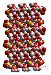 | Keywords: Copper(II)-sulfate-pentahydrate-a-axis-xtal-2007-CM-3D-sf.png Space-filling diagram of part of the crystal structure of copper II sulfate pentahydrate CuSO<sub>4</sub>·5H<sub>2</sub>O Viewed down the a axis of the triclinic unit cell Colour code Copper Cu orange-pink Sulfur S yellow Oxygen O red Hydrogen H white Crystal structure from http //dx doi org/10 2138/am 2007 2229 American Mineralogist 2007 92 532 “545 Image generated in http //www crystalmaker com/ CrystalMaker 8 3 Own 2010-07-26 Ben Mills Benjah-bmm27 Images by Ben Mills Space-filling models Crystal structures of copper II sulfate pentahydrate |