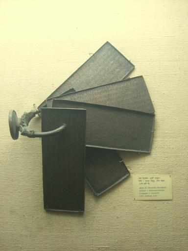 | Keywords: Copper plates NMND-9.JPG Amma II Eastern Chalukya Sanskrit language written in Canarese-Telugu script 10th century AD Copper plates exhibited in the National Museum New Delhi India own 2010-09-02 Daderot Public domain Copper plates in National Museum New Delhi Telugu inscriptions Art of the Chalukya Empire Andhra Pradesh in the 10th century Eastern Chalukyas |