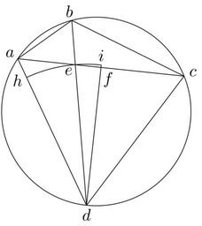 | Keywords: Coppernicus 010.svg de à ber die Kreisbewegungen der Weltkörper 10 File Kreisbewegungen-Coppernicus-0 djvu p 36 1879 w Nicolaus Copernicus File Coppernicus10 png PD-old-100 De revolutionibus drawings LaTeX Source Code <syntaxhighlight lang latex > complile with »pdflatex« \documentclasstikz convert pdf2svg standalone \usepackage tkz-euclide \usetkzobj all \begin document \begin tikzpicture \tkzSetUpLineline width 0 4pt \tkzDefPoint 0 0 O \tkzDefPoint 2 0 O1 \tkzDrawCircle O O1 \tkzDefPointByrotation center O angle 146 O1 \tkzGetPoint A \draw A + 146 0 2 node a ; \tkzDefPointByrotation center O angle 105 O1 \tkzGetPoint B \draw B + 105 0 2 node b ; \tkzDefPointByrotation center O angle 22 O1 \tkzGetPoint C \draw C + 22 0 2 node c ; \tkzInterLC/tikz/overlay A B B C \tkzGetFirstPoint X1 \tkzInterCC C B X1 B \tkzGetFirstPoint X2 \tkzInterLC/tikz/overlay B X2 O O1 \tkzGetFirstPoint D \draw D + -90 0 2 node d ; \tkzInterLL B D C A \tkzGetPoint E \draw E + -135 0 2 node e ; \tkzDefLineperpendicular through D /tikz/overlay A C \tkzGetPoint X3 \tkzInterLL X3 D C A \tkzGetPoint F \draw F + -60 0 3 node f ; \tkzInterLC/tikz/overlay A D D E \tkzGetFirstPoint H \draw H + -160 0 2 node h ; \tkzInterLC/tikz/overlay X3 D D E \tkzGetFirstPoint I \draw I + 90 0 2 node i ; \tkzDrawSegment B D \tkzDrawSegment A B \tkzDrawSegment A C \tkzDrawSegment B C \tkzDrawSegment D C \tkzDrawSegment A D \tkzDrawSegment I D \tkzDrawArccolor black D I A \end tikzpicture \end document </syntaxhighlight> |